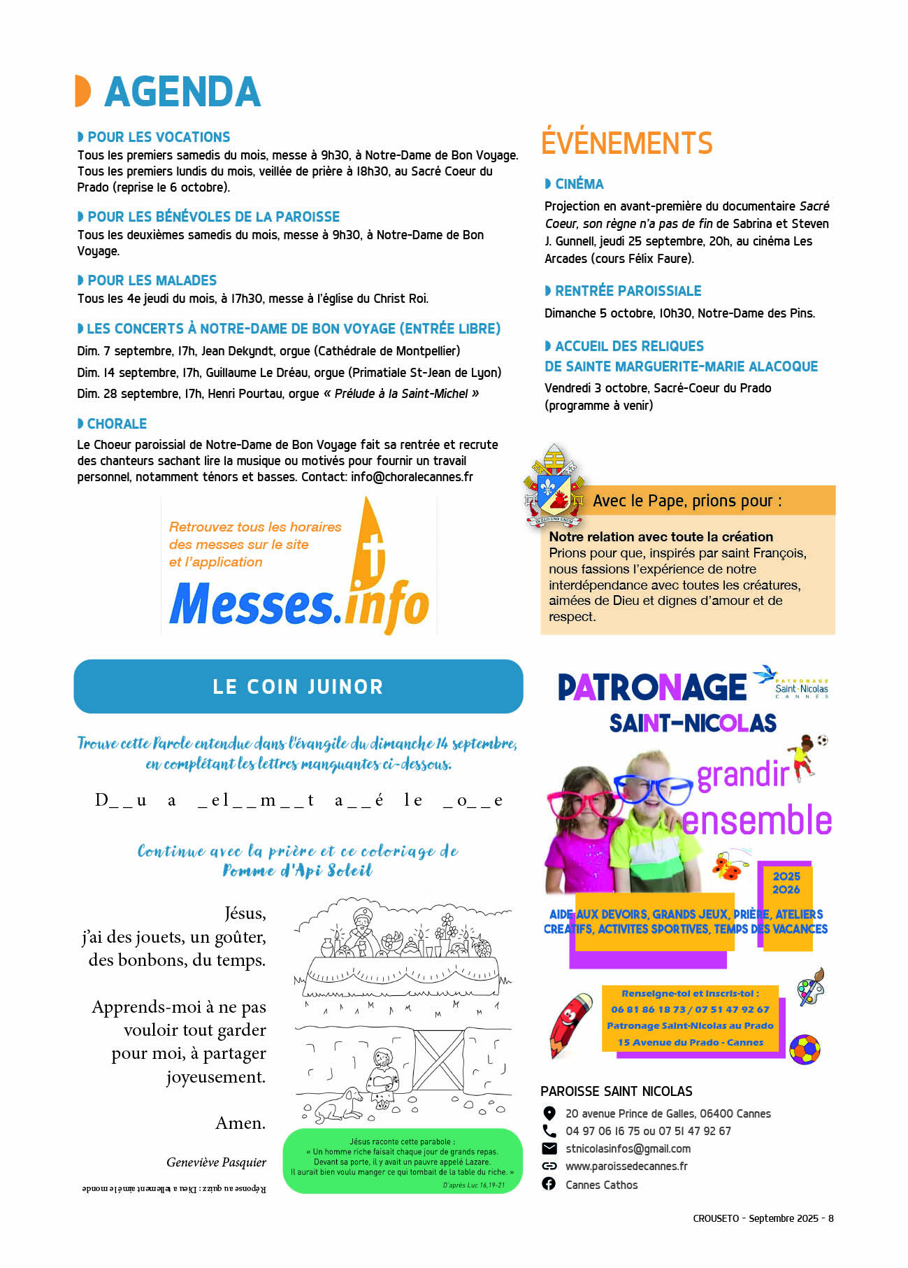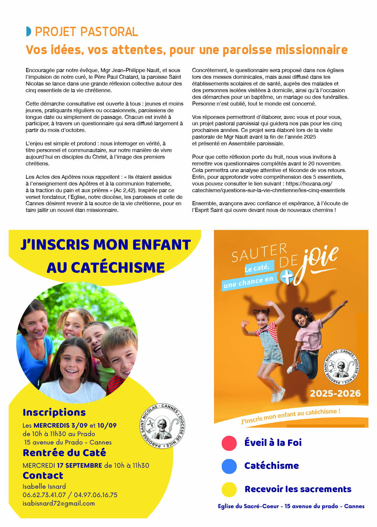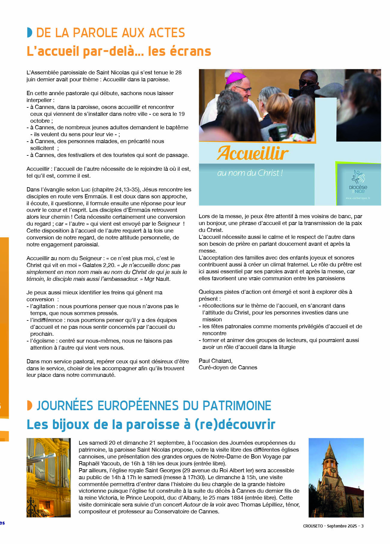 Nous te confions notre paroisse et tous nos frères et sœurs qui résident à Cannes.