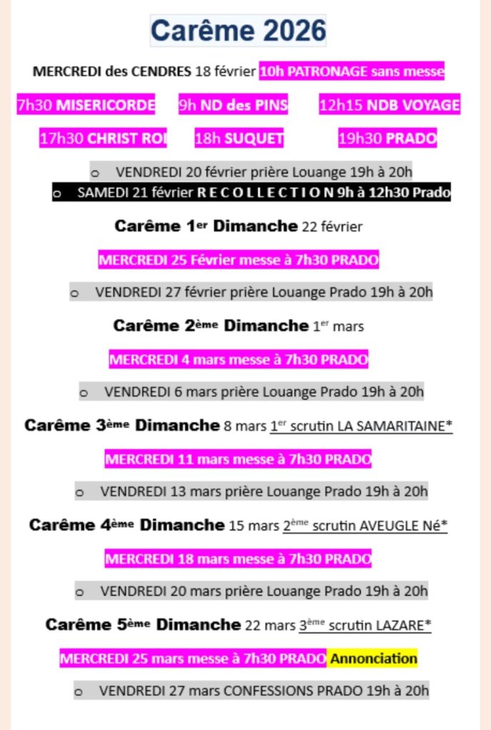 Nous te confions notre paroisse et tous nos frères et sœurs qui résident à Cannes.